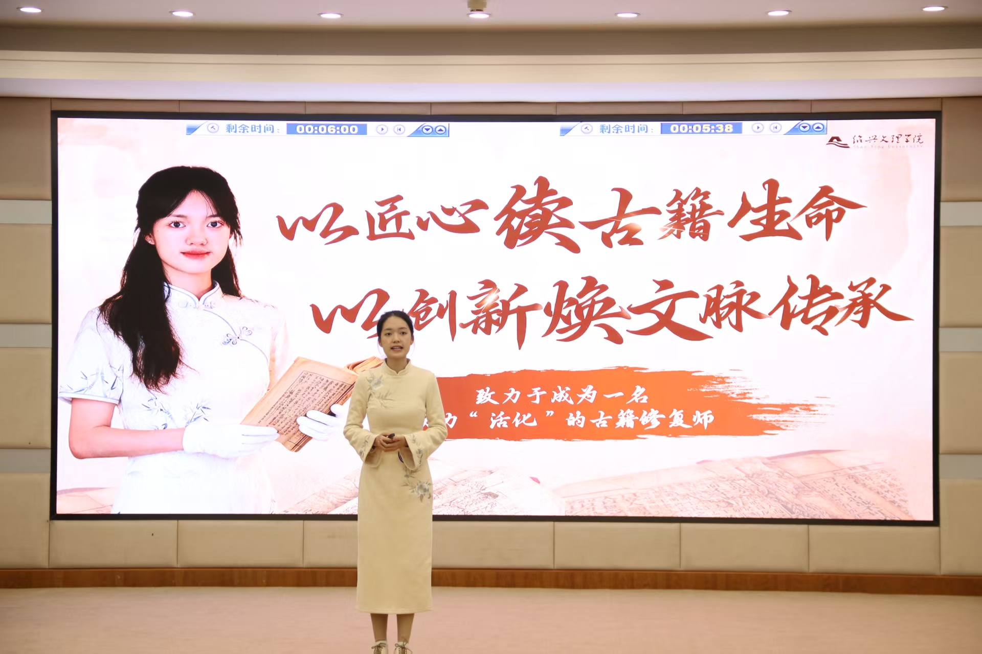 作 品:《匠心缝古籍,创新活文脉——助力“活化”的古籍修复师》——立志成为助力“活化”的古籍修复师,掌握核心修复技艺并运用数字技术提升效率,推动古籍资源活化,已获两家单位就业意向。