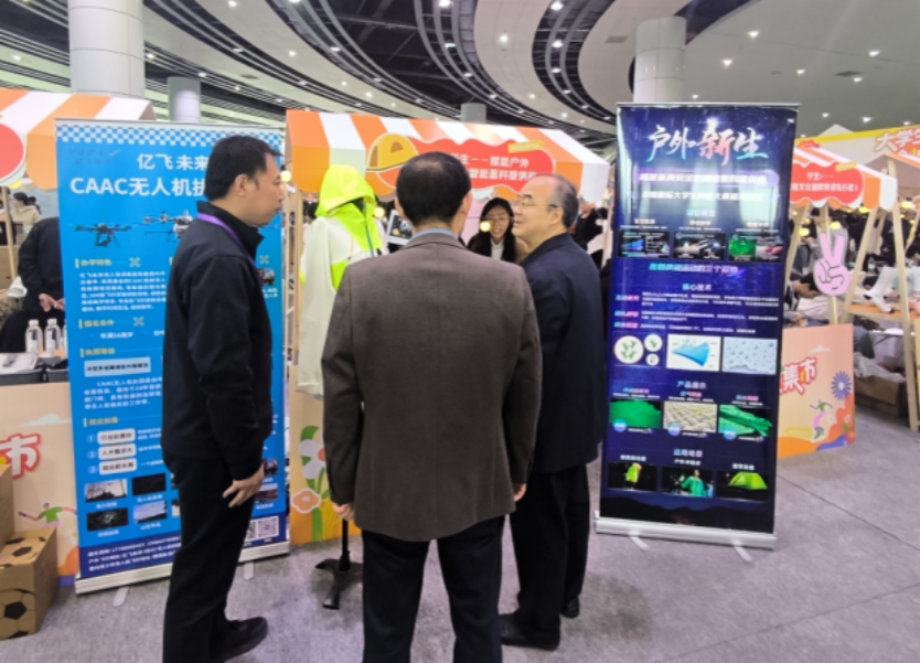 校党委副书记黄坚专程赴展位慰问参展师生。黄坚对参展项目成果表示肯定,他指出,要用学生创业带动产业发展,让更多的学子加入这个创新创业过程中去。