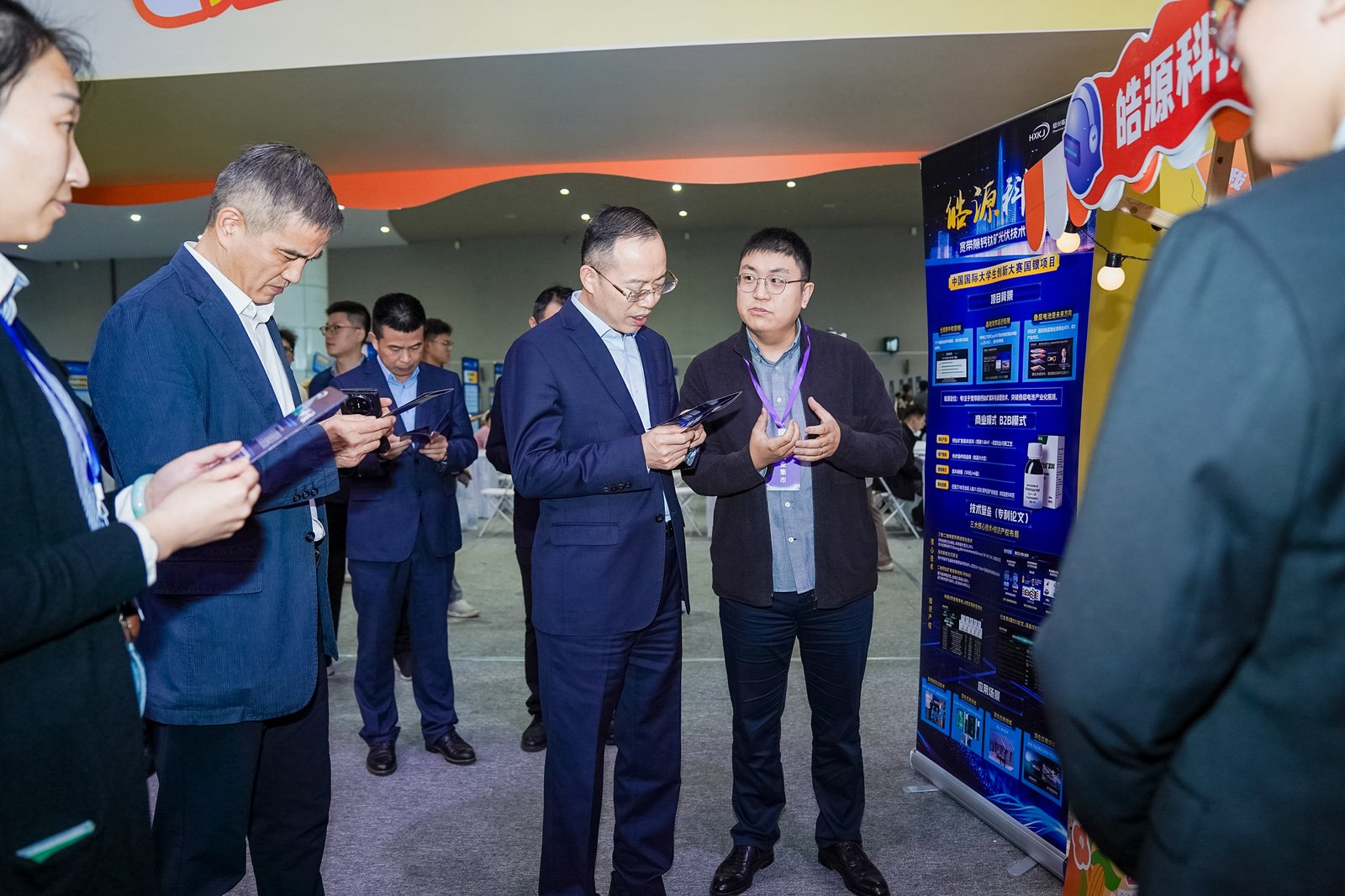 期间,绍兴市副市长孙君莅临我校“皓源科技——宽带隙钙钛矿光伏技术引领者”项目展位。该团队研发的宽带隙钙钛矿太阳能电池打破了当年该型电池光电转换效率的世界记录,并成功实现与晶硅底电池的集成,在相同面积下比单纯晶硅多发30%以上的电量,获得了今年中国国际大学生创新大赛银奖。团队还积极拓展技术应用场景将移动发电功能融入户外运动的帽子、登山杖、背包、冲锋衣等,打造“随身充电宝”。孙副市长对学校创新创业工作和师生团队取得的成果表示充分肯定。